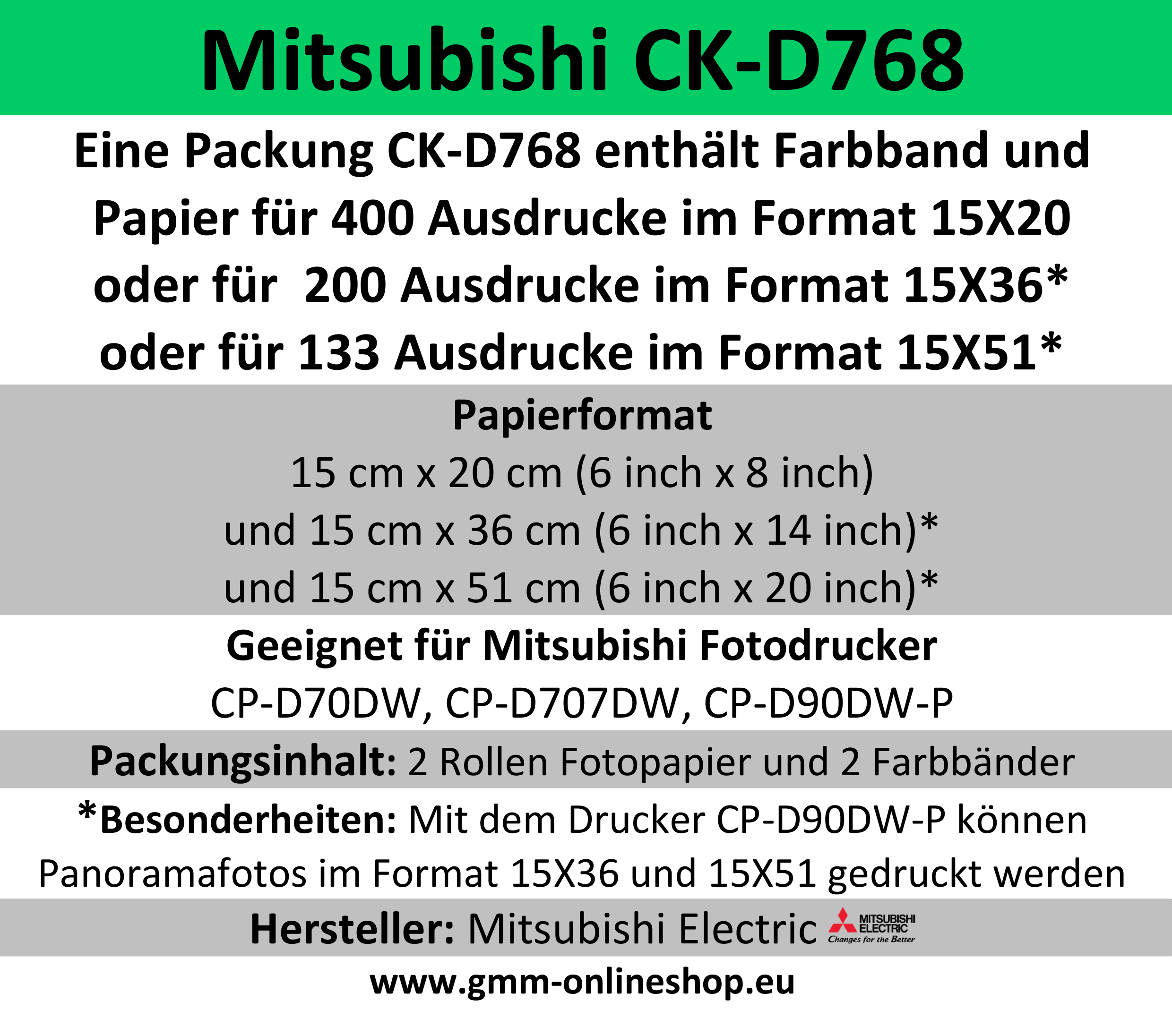 Mitsubishi Paper/Ink Ribbon Set CK-D768